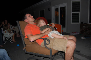 It was in the park right across from our house. We had front row seats - right on our back deck. All of our neighbors came by that day to tell us they were jealous. I couldn't tell of they were angling for an invitation, but instead we invited over the family members who weren't still sweltering and vomiting in the desert of Arizona. We made smores on the little deck fire, ate watermelon and ice cream, and had a fun time visiting in the privacy of our own space while watching hundreds of people gather across the street.