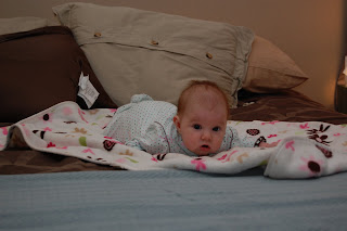 At your 4 month check up, the doctor was thrilled with your progress. She sat down and talked with you, said you have a million hair follicles and would have tons of thick hair, and said that besides sitting up on your own, you pass every milestone on the six month checklist. Then she tried you sitting up and when you leaned on your knees but didn't fall over, she actually clapped and squealed, saying excitedly "oh my gosh she can already tripod!" A new term in my mom dictionary.